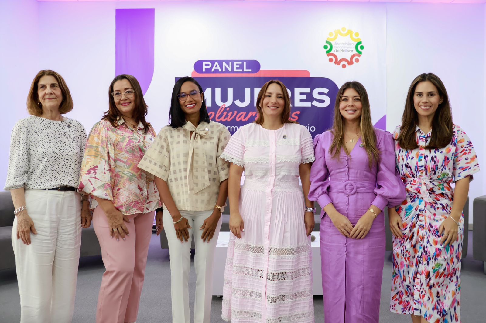 Durante el panel desarrollado en las instalaciones de la Asamblea Departamental de Bolívar, se contó con la participación de la primera dama y gestora social del Departamento, Angelica Salas, la Senadora Nadia Blel Scaf, las Representantes a la Cámara por Bolívar Juliana Aray y Angela Vergara, la secretaria de la mujer del Departamento, Nataly Bustillo, la presidente Ejecutivo de la Cámara de Comercio de Cartagena, Andrea Piña Gómez, la miembro de la Academia de historia de Cartagena, María Teresa Ripoll, la líder de la red “Mujeres de Influencia”, Ibeth Farelo y las Concejales mujeres de los diferentes municipios de Bolívar.