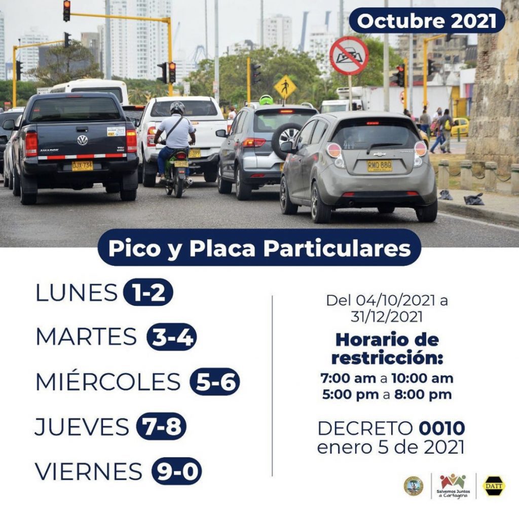 El pico y placa para particulares quedará de la siguiente manera desde el 04 de octubre al 31 de diciembre.