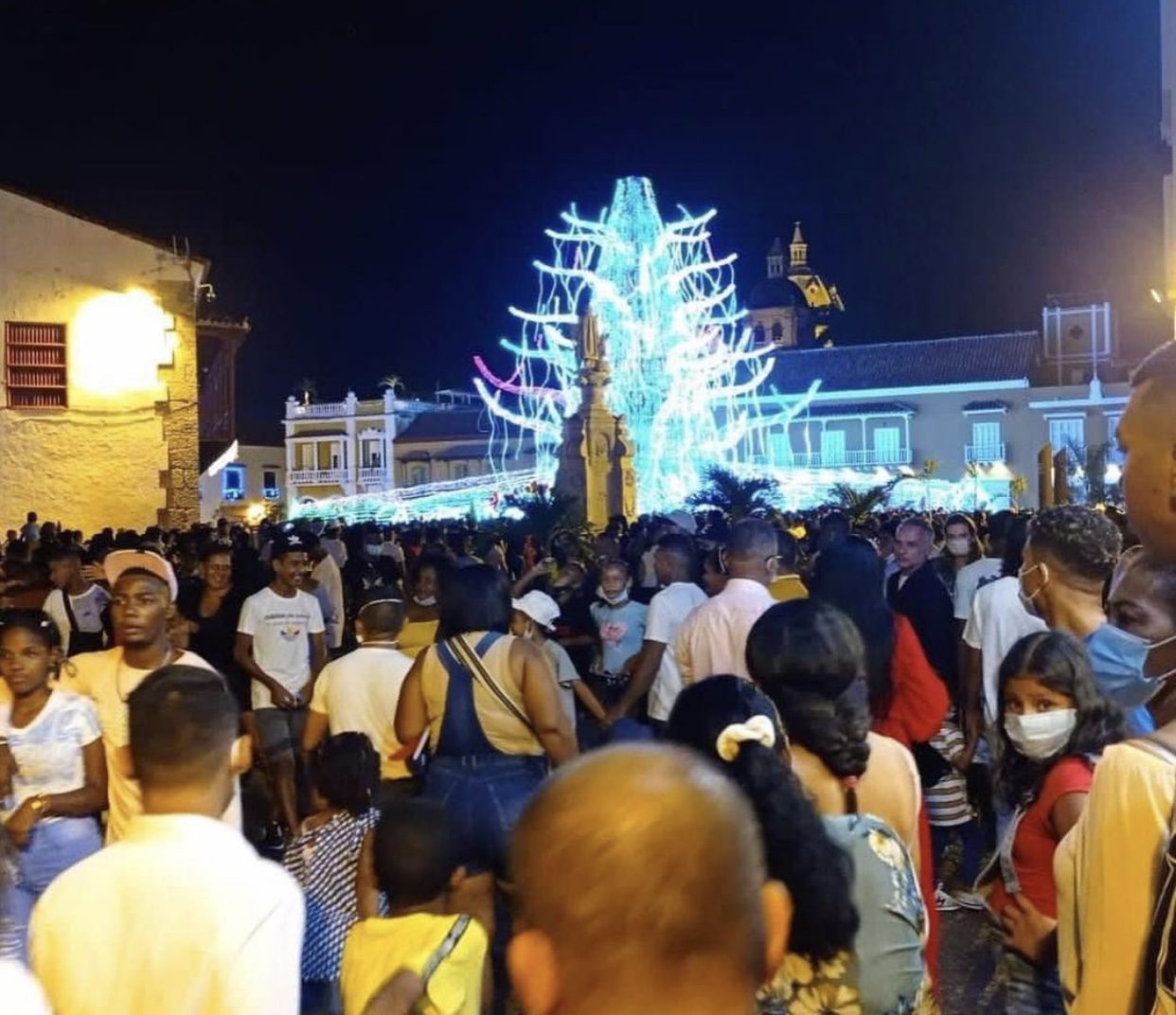 “Ayer en el Centro Histórico no se podía ni caminar”, “y el COVID-19” así describen algunas personas el caos que se vivió este 25 de diciembre, fecha en la que cientos de cartageneros se movilizaron a este emblemático lugar de la ciudad para ver el alumbrado navideño.