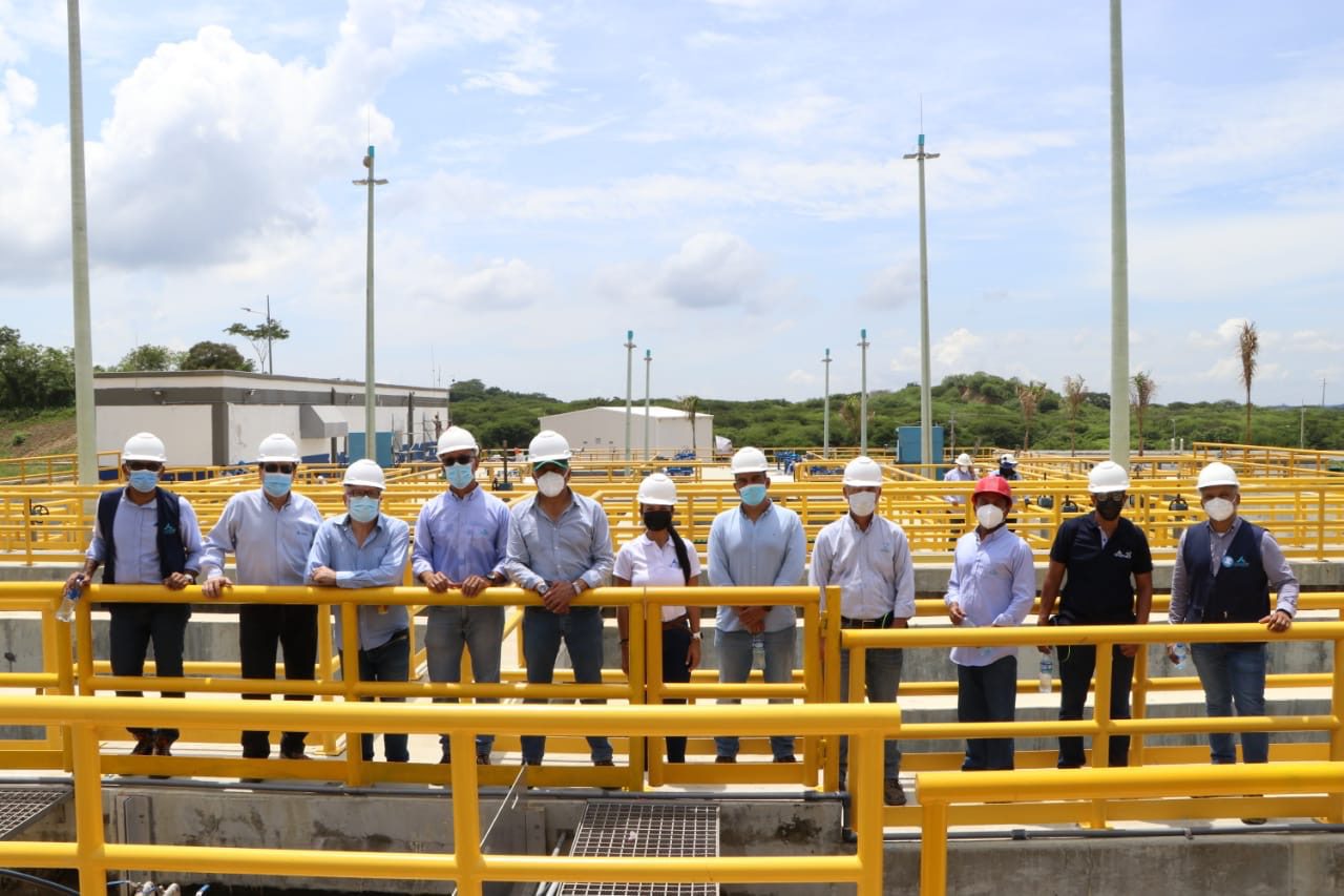 Altos ejecutivos de la Comisión de Regulación de Agua Potable y Saneamiento Básico, CRA y de las Empresas Públicas de Medellín se mostraron muy complacidos e impresionados con la gestión del recurso hídrico local y la proyección hacia el futuro del Acueducto de Cartagena luego de realizar un recorrido por instalaciones de agua cruda y obras prioritarias que integran este sistema.