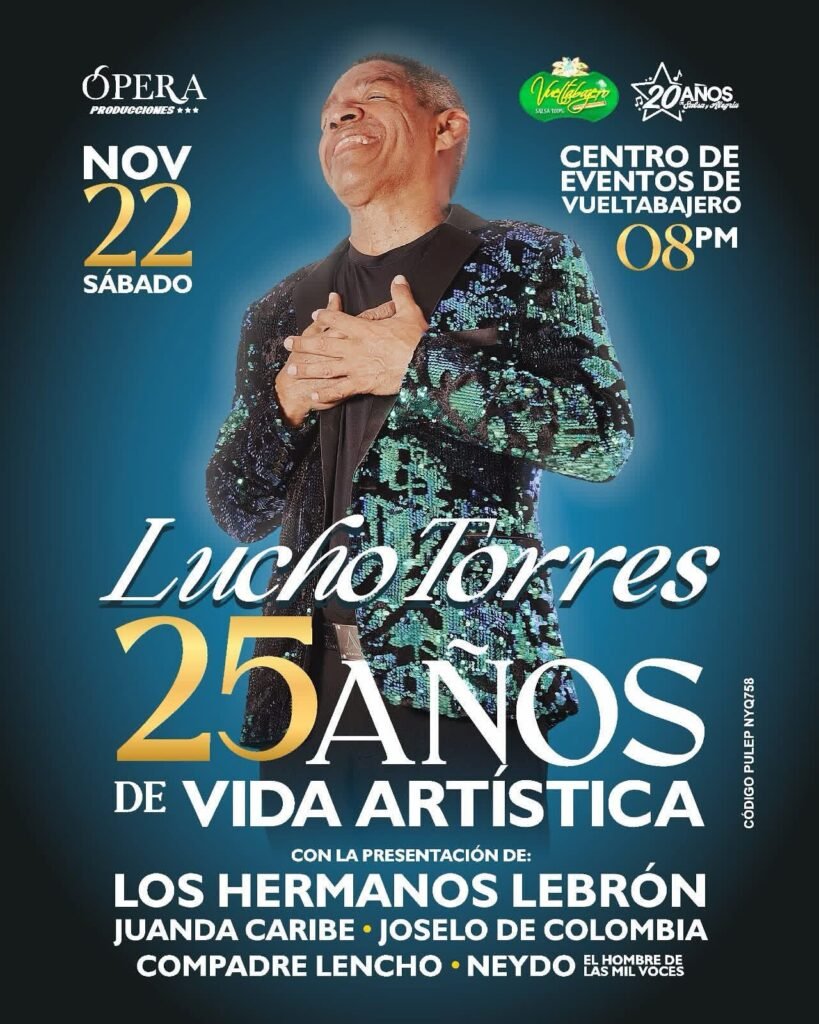 Cartagena y Barranquilla se preparan para vivir una fiesta inolvidable de música, sabor y tradición. El reconocido cantante Lucho Torres celebrará sus 25 años de vida artística con dos eventos de lujo que reunirán a grandes artistas de la música salsa y el humor.