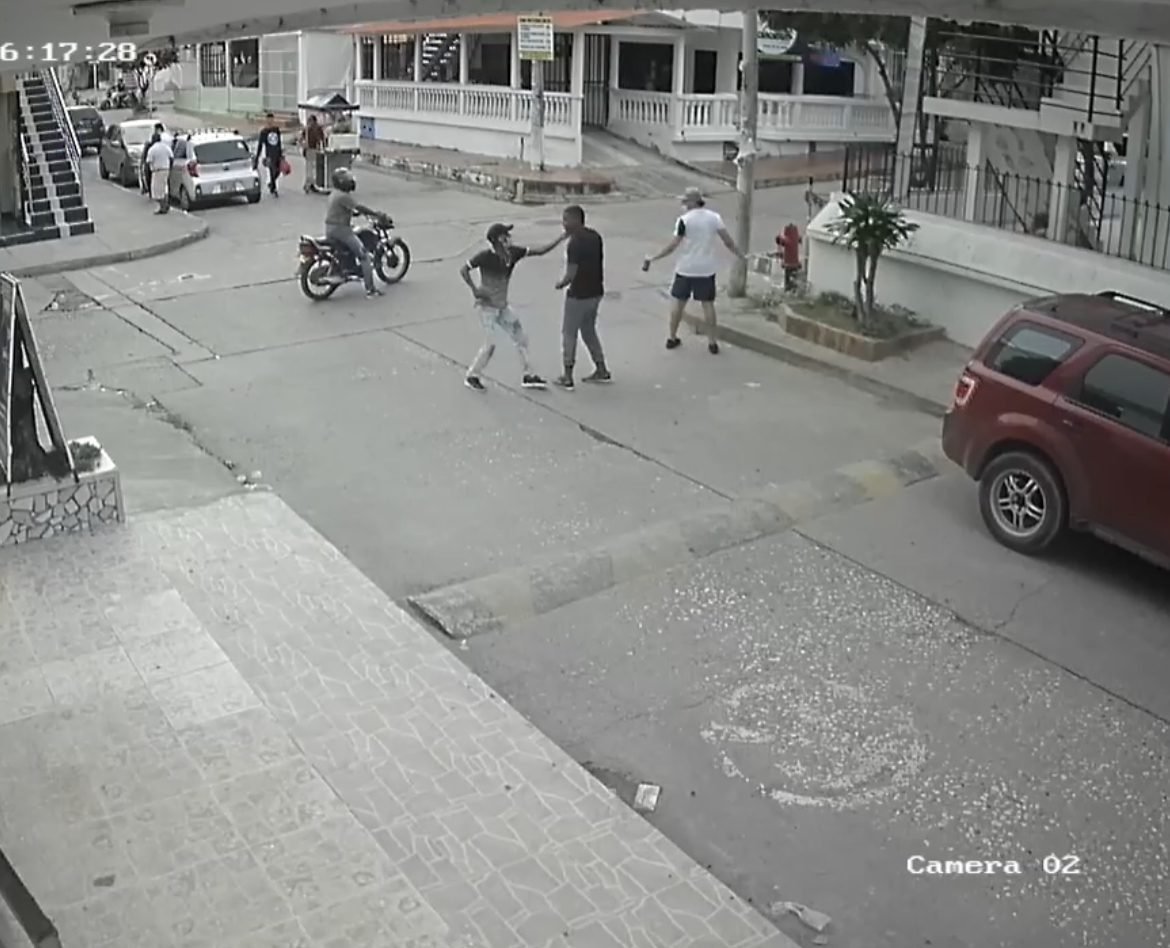 El hombre se va y se le cae la cadena, con toda la calma del mundo la recoge y emprende la huida en una moto que lo esperaba.